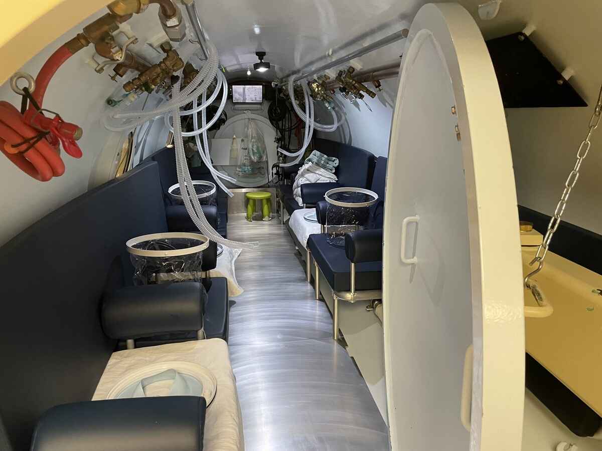 HBOT is administered to patients at Bridgeport Hospital in a special chamber that can fit six to eight patients at a time, including an HBOT technician who monitors each treatment. This is called a multi-person chamber, and Bridgeport Hospital is one of only two in the state that has one. Most other hospitals use a single-person chamber.