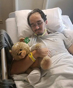 Vincent recovers in the hospital from his procedure to treat a massive stroke.