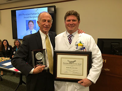 Herbert Archer, MD, Greenwich Hospital’s “Physician Partner in Care Award” winner, with Spike Lipschutz, MD, chief medical officer and senior vice president of the medical staff.