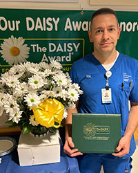 Paul DiDominic, RN, Milford Campus Intensive Care Unit (ICU), won the DAISY Award for Extraordinary Nurses for his dedication to patient-centered care, including making Super Bowl Sunday extra super for one patient. Noticing that one of his patients seemed down, DiDominic learned he was upset because he couldn’t be home with his family enjoying the Super Bowl. After checking with the patient’s provider, DiDominic ordered special Super Bowl-style food and put the game on in the patient’s room. DiDominic’s DAISY Award nominator wrote that he spends every shift putting patients first, as he did on Super Bowl Sunday. Award nominations can come from patients, family members, physicians, other clinicians and staff who observe a nurse providing extraordinarily compassionate care.
