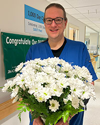Dave Morehead, RN, Bridgeport Hospital Milford Campus Intensive Care Unit (ICU), won the DAISY Award after helping a patient who had been in the ICU for more than two weeks and was at the end of life. Morehead wasn’t assigned to the patient the night before he passed away but continued to check on him. Before he left for the night, Morehead asked if he could share a story with the family and reminded them that their parents’ love and the life they built together was the reason everyone was in the room. The patient’s daughter-in-law wrote in the award nomination, “Dave not only took care of my father-in-law’s physical needs, but his emotional ones as well. I’m certain his impact helped ease my father-in-law’s transition into Hospice and ultimately to his eternal rest.”