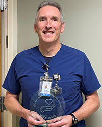 Greg Waterfield, lead tech, CT Scan, earned the April Patient Experience Award for Caring and Excellence (PEACE). It’s his second PEACE in six months. Waterfield was driving to work when he noticed a house fire on Mill Hill Avenue. Without hesitation, he pulled over and began banging on the front door to alert the people inside. Thanks to Waterfield’s quick thinking and action, everyone got out safely. Waterfield called 911 and stayed until emergency services were en route, then continued to work as if it were just another day. “This kind of selfless act speaks volumes about Greg’s character,” Jacqueline Laird, RN, nurse manager, Surgical Intensive Care Unit (SICU), wrote in her nomination. “His dedication to the well-being of others, even outside the walls of the hospital, is a true example of what it means to care deeply and act with purpose.”