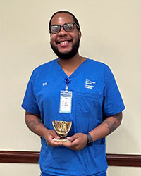 Carlos Charles, RN, Emergency Department, had a patient who had nausea, vomiting and diarrhea for 24 hours. The patient was alert and oriented when first assessed, but Charles noted slurred speech and facial droop during a reassessment an hour later. He immediately activated a stroke code and escalated his findings to the provider. The patient was diagnosed with acute onset stroke, given medication and transferred to another hospital for thrombectomy. Charles’ excellent assessment, communication and hand-off skills saved his patient from a serious outcome.