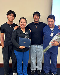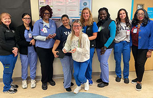 The Pediatric Short Stay unit (SP 7-4) team recently earned PEACE (Patient Experience Award for Caring and Excellence) recognition for going above and beyond to create an environment of healing, support and empathy. The patient was admitted to the unit for treatment the week before his high school graduation, and he was upset that his parents would not be able to celebrate his achievements. The SP 7-4 team coordinated with several other departments to make special arrangements so the patient could safely attend his graduation, after which he returned to the unit to complete his treatment.