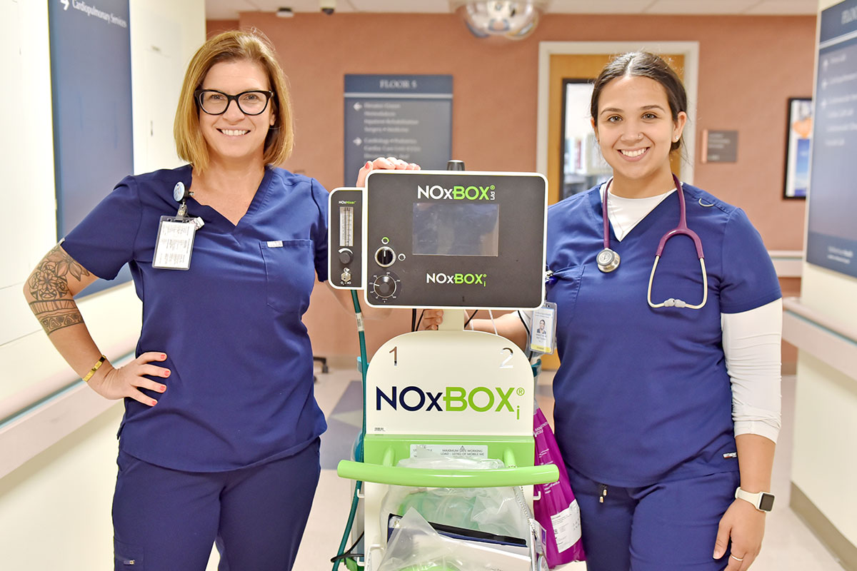 Respiratory therapists recently completed training for “NOxBox” devices that safely administer the gas to patients. The NOxBox devices will first be used for patients requiring right-sided catheterization procedures; the gas is helpful, for example, in diagnosing patients with pulmonary arterial hypertension.